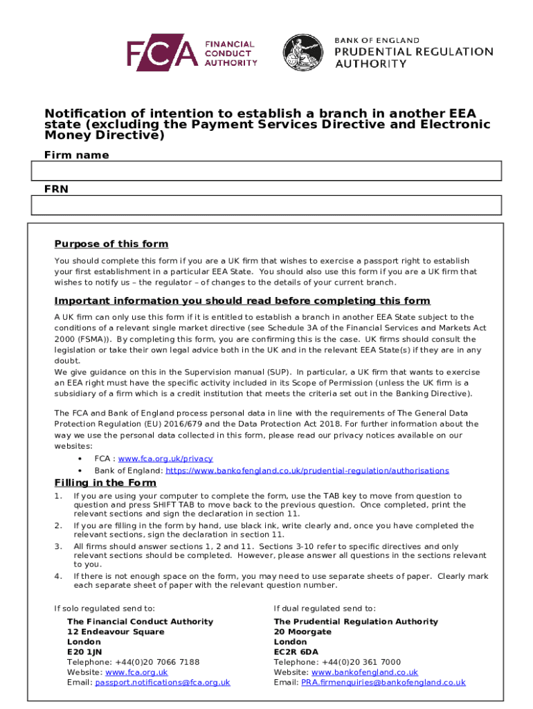 The Notification of intention to establish a branch in another EEA state is a document needed to be submitted to the required address to provide specific information. It has to be filled-out and signed, which may be done manually, or with the help of a certain solution e. g. PDFfiller. This tool helps to complete any PDF or Word document right in the web, customize it according to your requirements and put a legally-binding electronic signature. Once after completion, you can easily send the Notification of intention to establish a branch in another EEA state to the relevant recipient, or multiple individuals via email or fax. The editable template is printable as well because of PDFfiller feature and options proposed for printing out adjustment. Both in digital and in hard copy, your form should have a clean and professional outlook. It's also possible to turn it into a template to use later, so you don't need to create a new document from scratch. Just amend the ready template.
