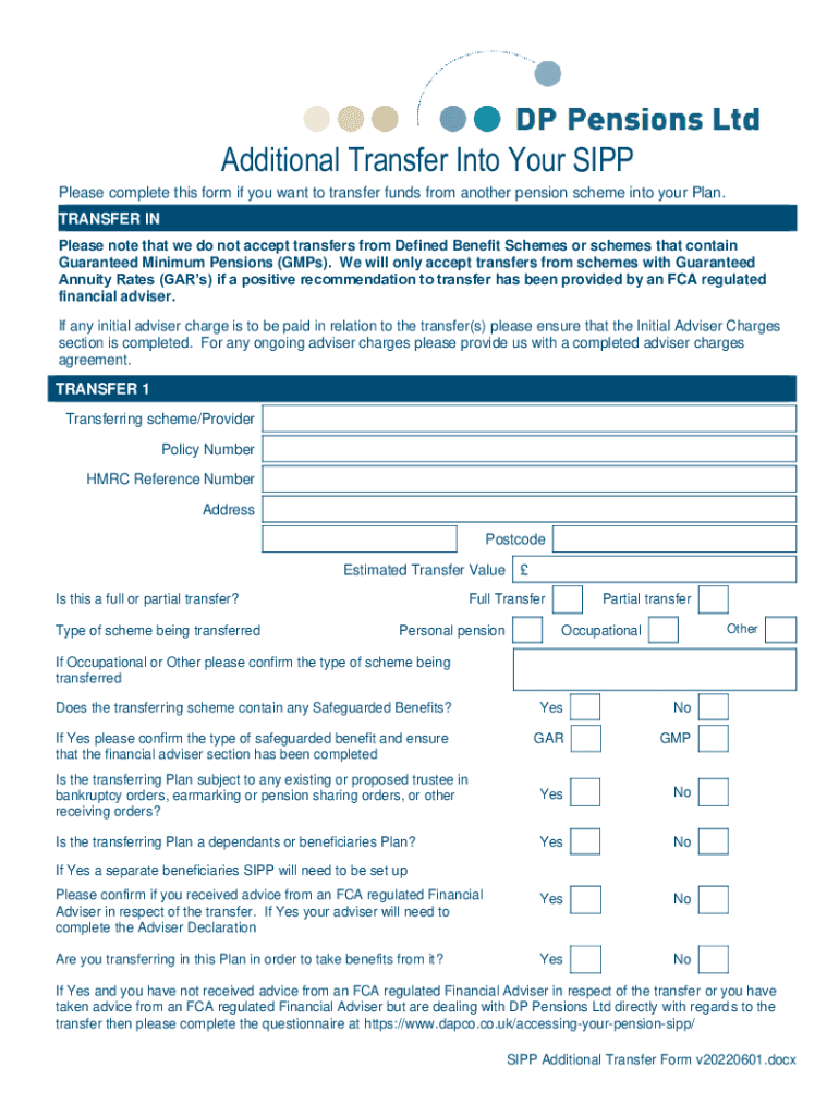 Get the free SIPP Transfer In Form