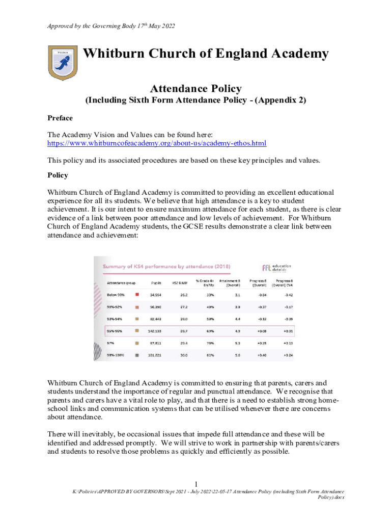 Get the free 22-05-17 Attendance Policy (including Sixth Form Attendance Policy)