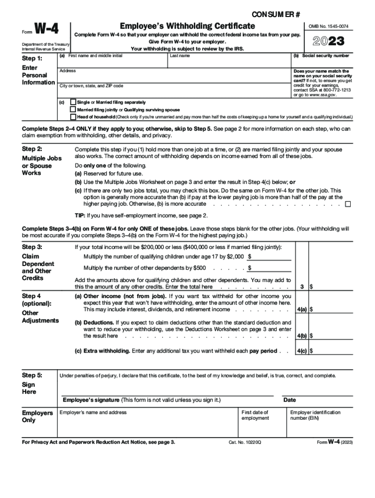 Employees Withholding CertificateW4Department of the Treasury