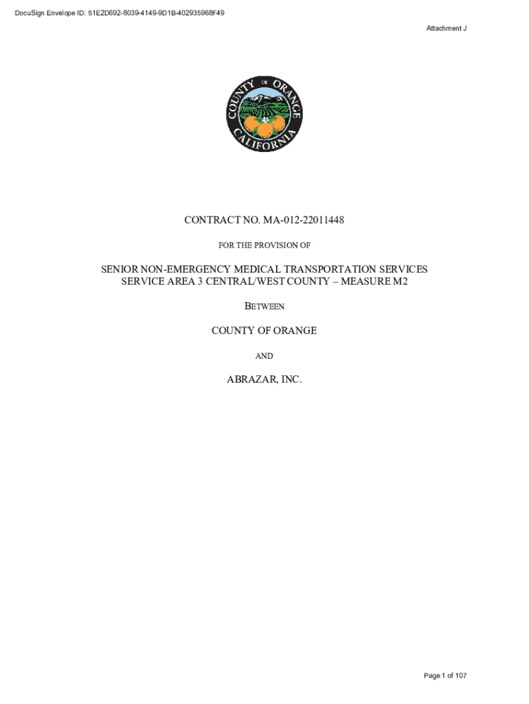 DocuSign Envelope ID: 51E2D692803941499D1B402935968F49 Attachment CONTRACT NO. MA01222011448 FOR THE PROVISION SENIOR EMERGENCY MEDICAL TRANSPORTATION SERVICES SERVICE AREA 3 CENTRAL/WEST COUNTY MEASURE
