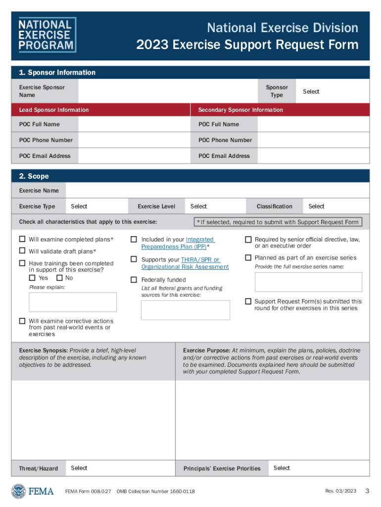 National Exercise Division 2023 Exercise Support Round2023 Exercise Support Request Form Instructions The 2023 Exercise Support Request Form is the document eligible organizations complete to request
