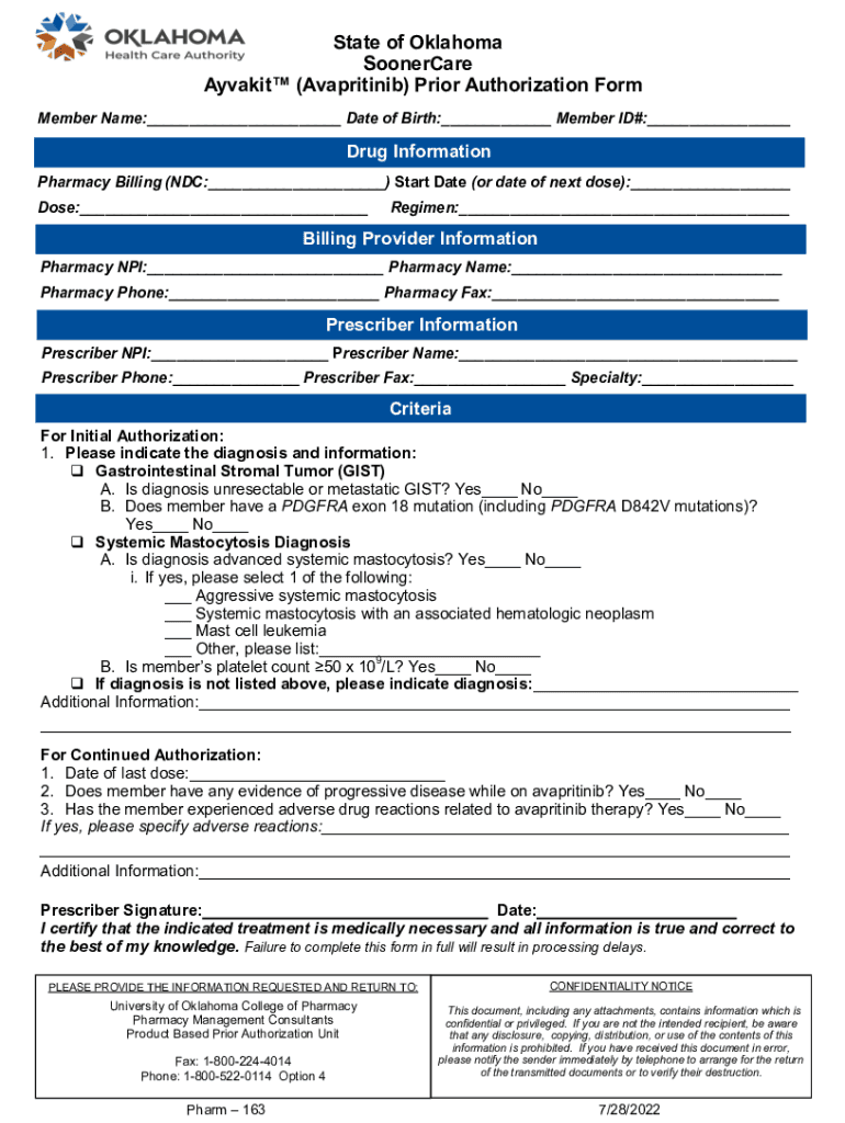 Get the free State of Oklahoma SoonerCare Ayvakit (Avapritinib) ...