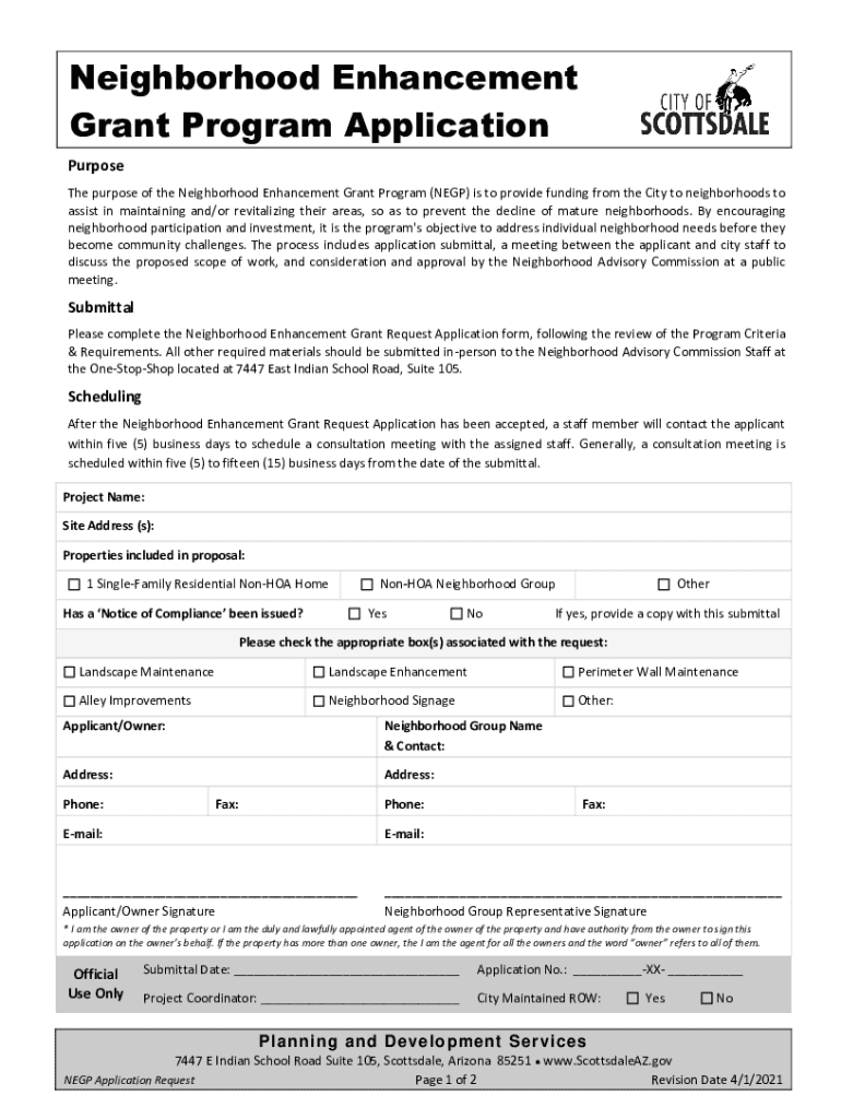 Get the free Neighborhood Enhancement Grant Program Application