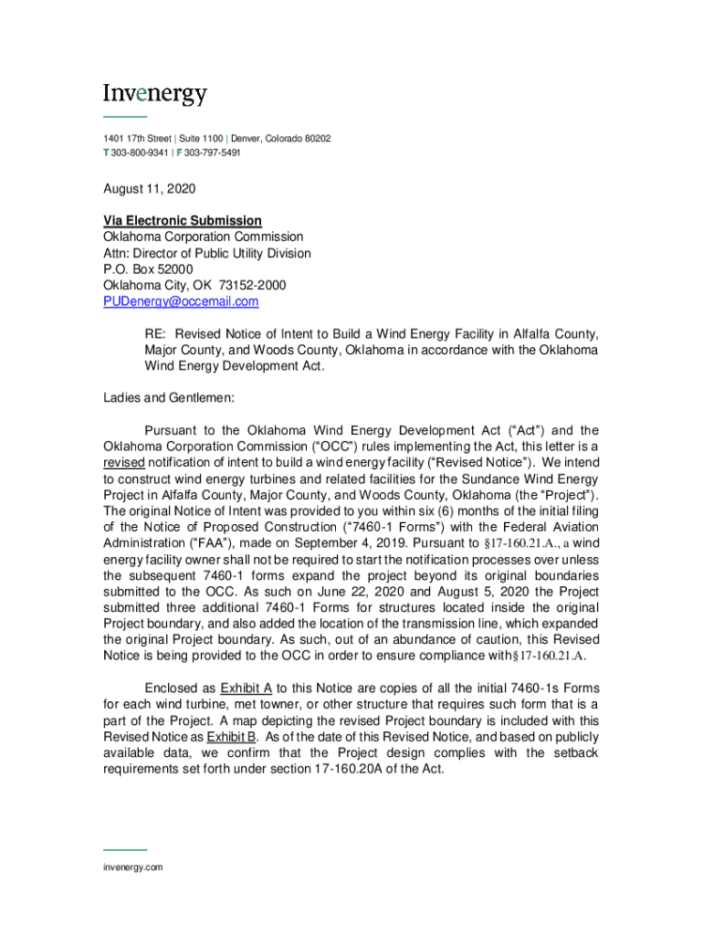 1401 17th Street | Suite 1100 | Denver, Colorado 80202 T 3038009341 | F 3037975491August 11, 2020 Via Electronic Submission Oklahoma Corporation Commission Attn: Director of Public Utility Division
