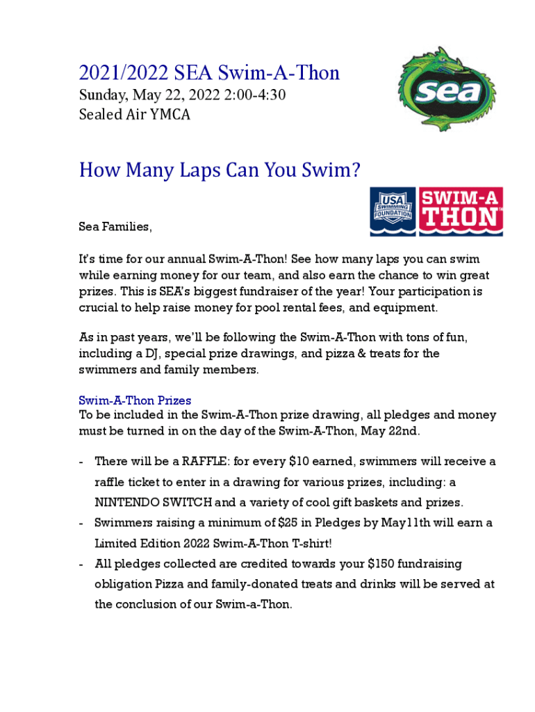 Sunday, May 22, 2022 2:004:30 Sealed Air McMahon Many Laps Can You Swim? Sea Families, It's time for our annual Animation! See how many laps you can swim while earning money for our team, and also