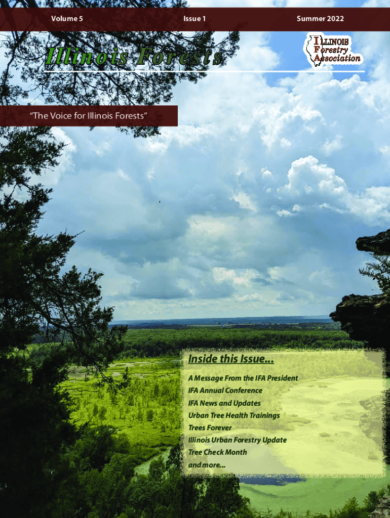 Summer 2022Illinois Forests The Voice for Illinois ForestsInside this Issue... A Message From the IFA President IFA Annual Conference IFA News and Updates Urban Tree Health Trainings Trees Forever