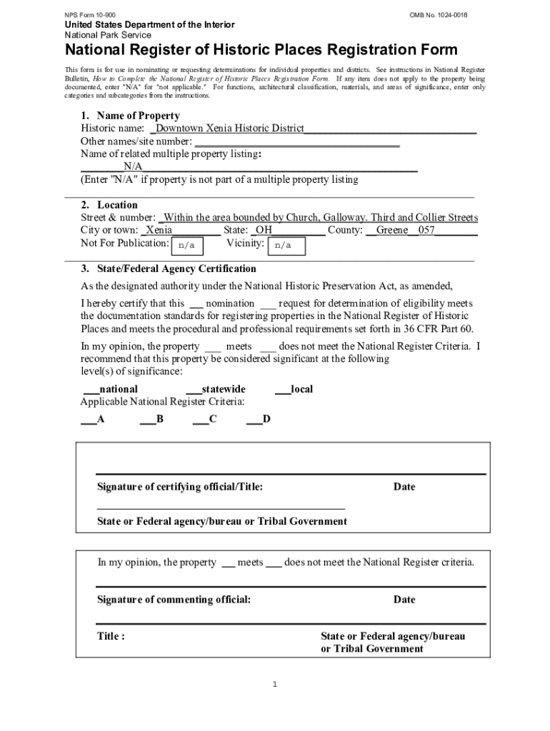 NPS Form 10900OMB No. 10240018United States Department of the Interior National Park ServiceNational Register of Historic Places Registration Form This form is for use in nominating or requesting
