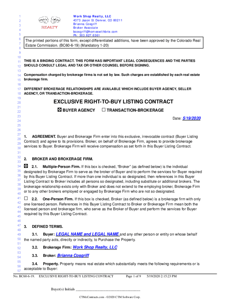 Work Shop Realty, LLC 4373 Jason St Denver, CO 80211 Brianna Copyright Broker Associate bcosgriff@homeswithbrie.com pH: 303.827.6361The printed portions of this form, except differentiated additions,