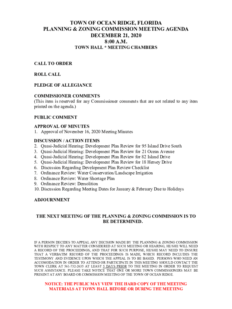 PLANNING & ZONING COMMISSION MEETING AGENDA