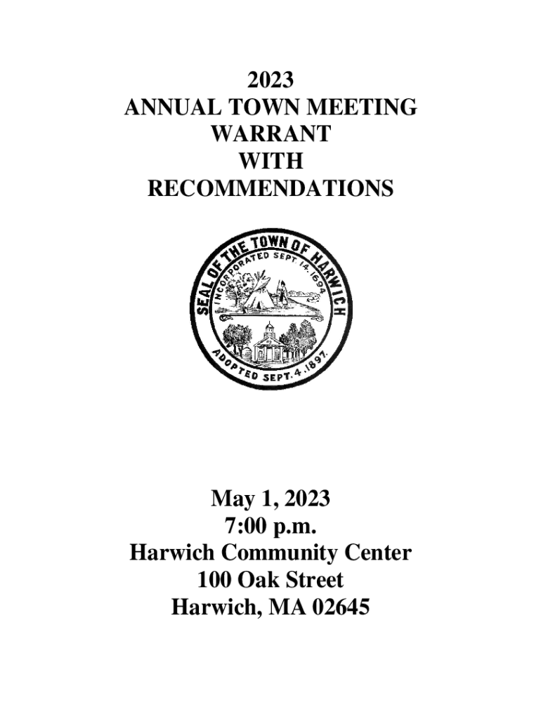 2023 ANNUAL TOWN MEETING WARRANT WITH RECOMMENDATIONS May 1, 2023 7:00 p.m. Heinrich Community Center 100 Oak Street Heinrich, MA 02645TABLE OF CONTENTS ANNUAL TOWN MEETING MAY 1, 2023, Page Number
