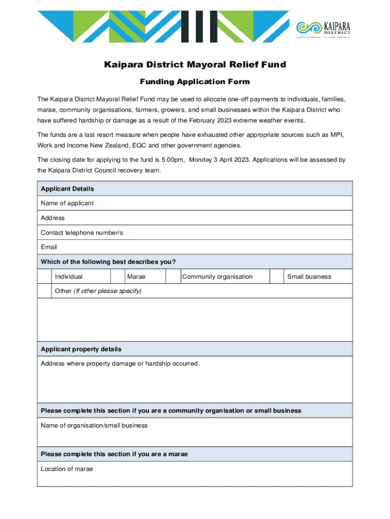Kampala District Mayoral Relief Fund Funding Application Form The Kampala District Mayoral Relief Fund may be used to allocate one off payments to individuals, families, Marie, community organizations,