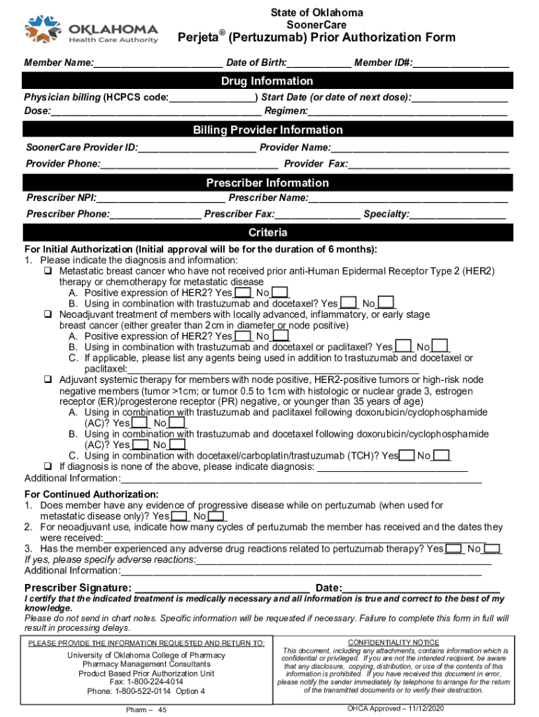 SoonerCarePerjeta (Pertuzumab) Prior Authorization Form