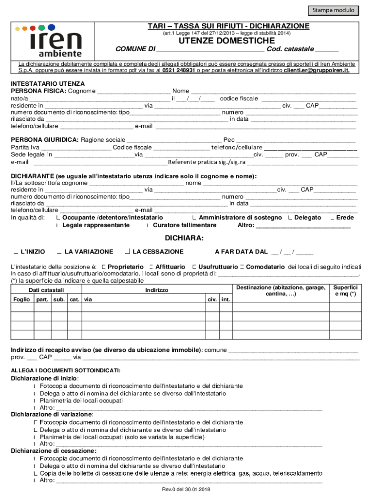 Stamp modular TESSA SUI REFIT DICHIARAZIONE (art.1 Legged 147 Del 27/12/2013 legged DI stability 2014)TENSE DOMESTIC COMMUNE DI ___ Cod. Castle ___ La dichiarazione debutante complete e complete deli