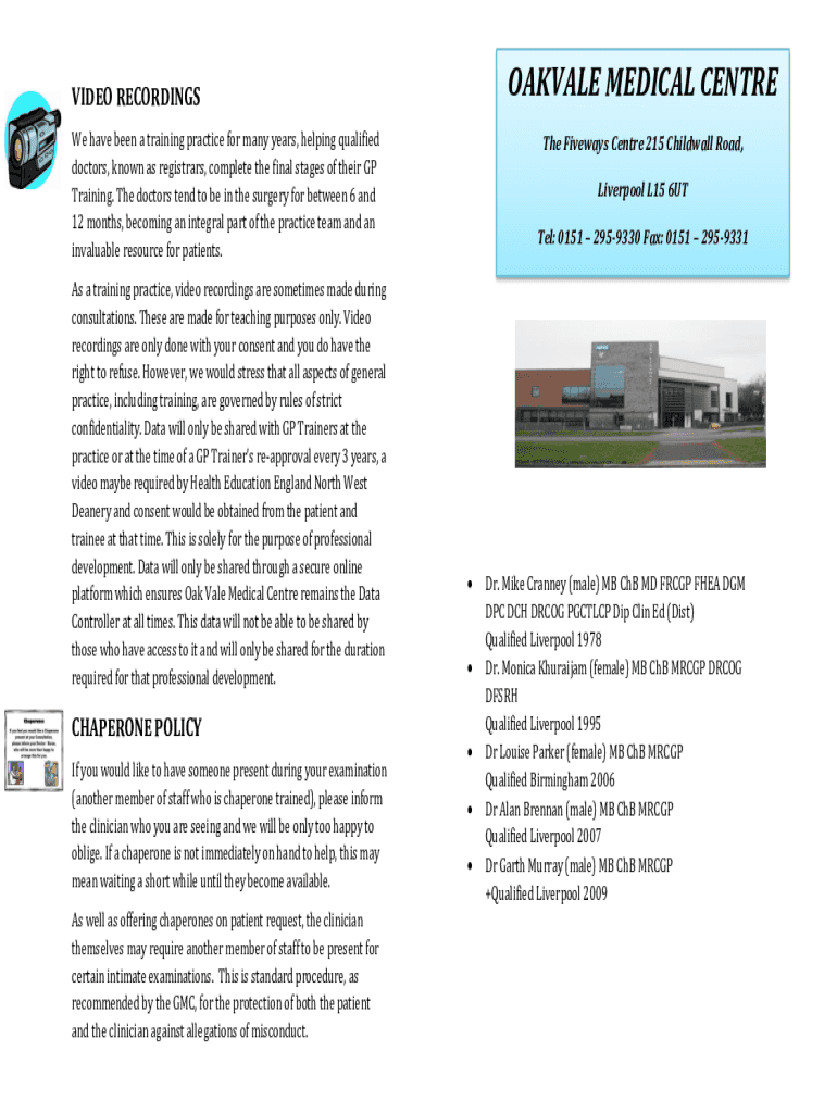 OAKDALE MEDICAL MONTEVIDEO RECORDINGS We have been a training practice for many years, helping qualified doctors, known as registrars, complete the final stages of their GP Training. The doctors tend