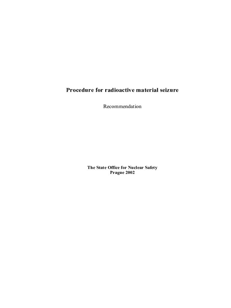 Procedure for radioactive material seizure Recommendation State Office for Nuclear Safety Prague 2002The procedure for radioactive material seizure2Introduction In compliance with the Act no. 18/1997