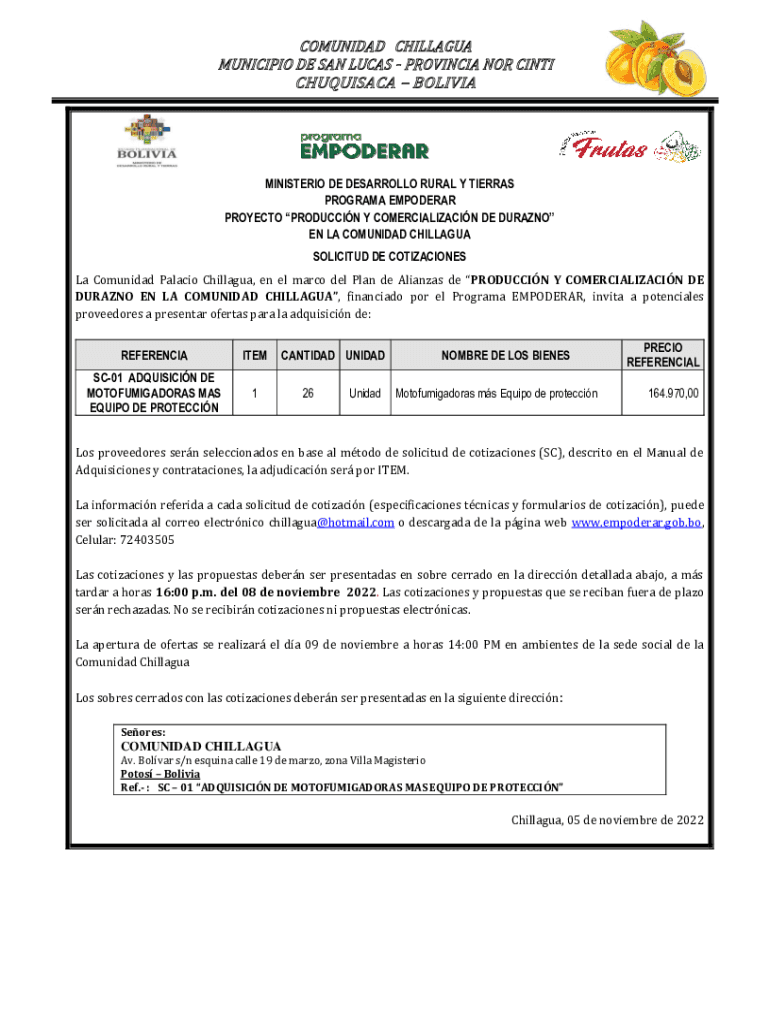 COMMUNIZED CHIHUAHUA MUNICIPAL DE SAN LUCAS PROVINCIAL NOR INTO CHUQUISACA BOLIVIAMINISTERIO DE DESARROLLO RURAL Y SIERRAS PROGRAM EMPEROR PROJECT PRODUCTION Y COMMERCIALIZATION DE DURAN EN LA COMMUNIZED
