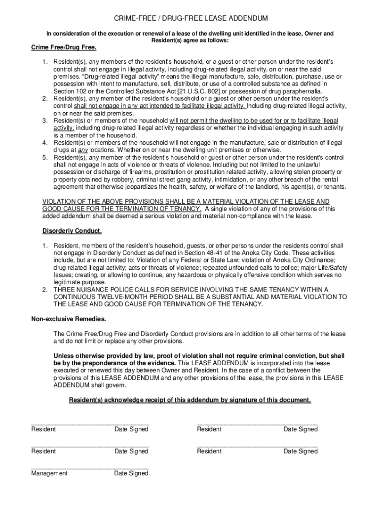 Get the Lease Addendum For Crime Free/Drug Free Housing