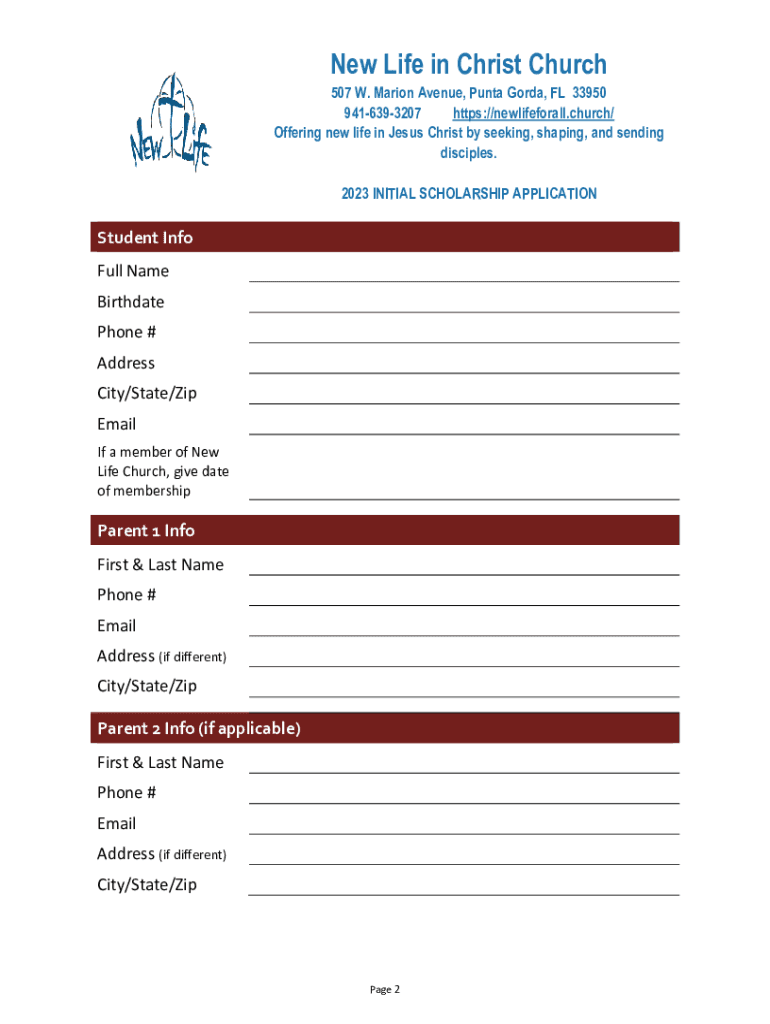 New Life in Christ Church 507 W. Marion Avenue, Junta Golda, FL 33950 9416393207 https://newlifeforall.church/ Offering new life in Jesus Christ by seeking, shaping, and sending disciples. 2023 INITIAL