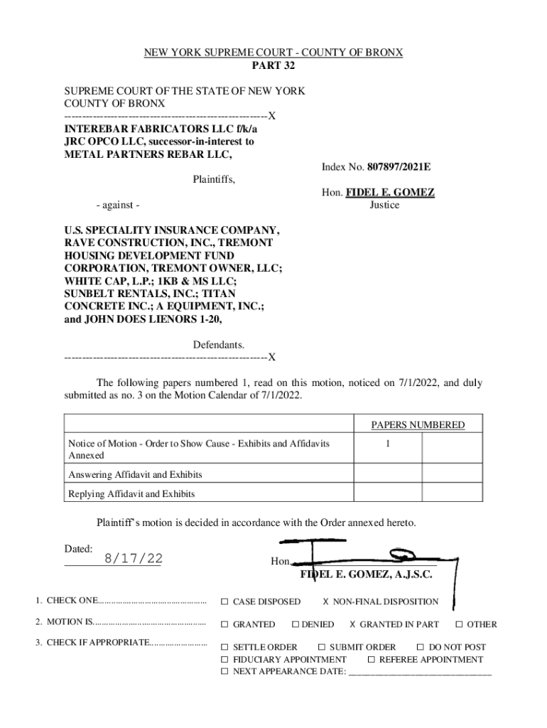 NEW YORK SUPREME COURT COUNTY OF BRONX