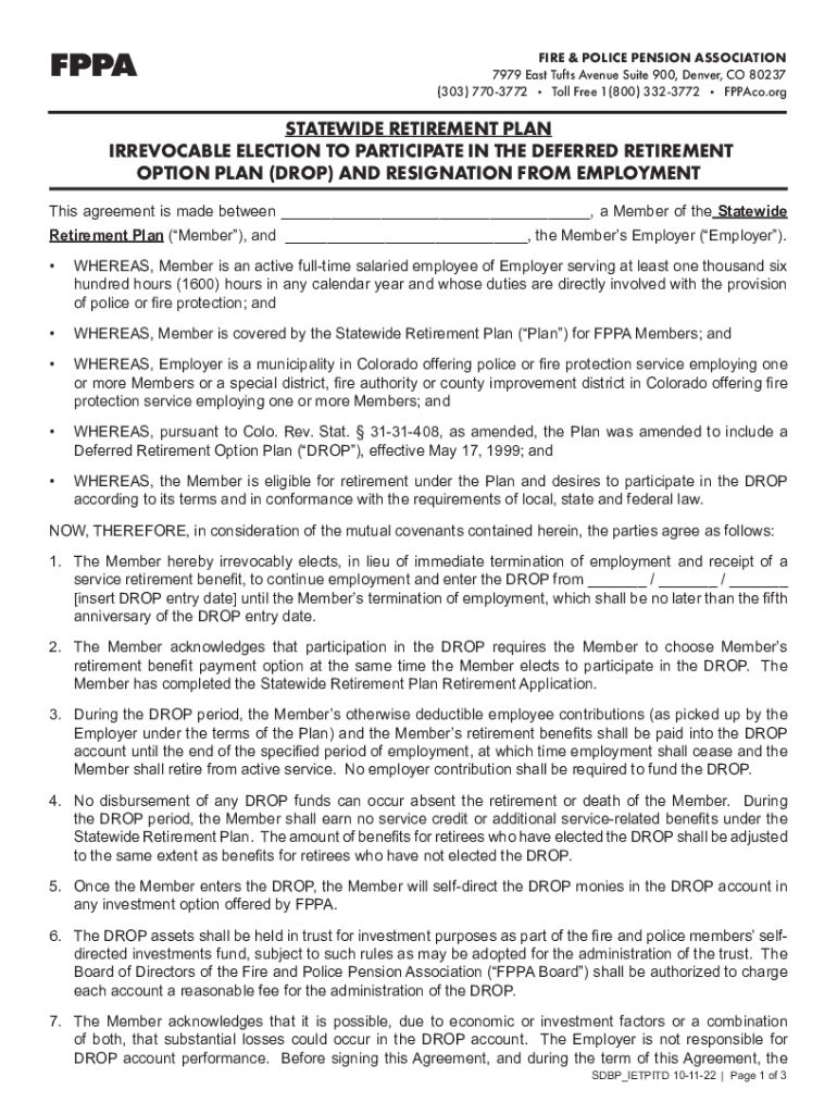 (303) 7703772 Toll Free 1(800) 3323772 Place. Statewide RETIREMENT PLAN