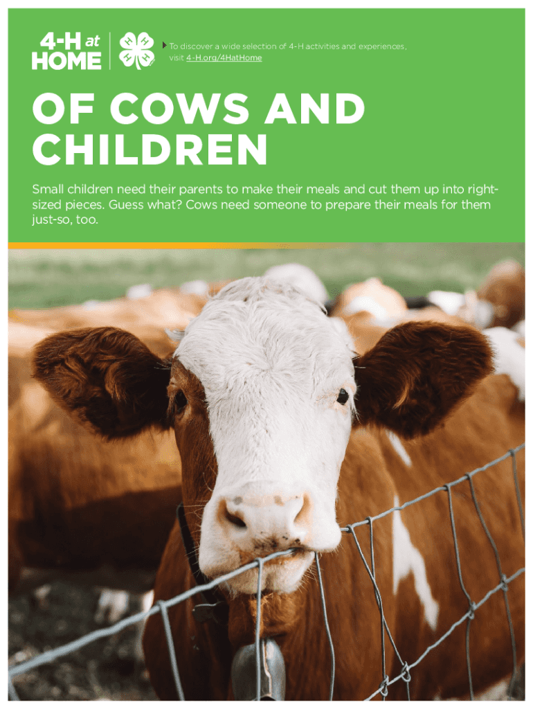 O discover a wide selection of 4H activities and experiences, T visit 4H.org/4HatHomeOF COWS AND CHILDREN Small children need their parents to make their meals and cut them up into rightsized pieces.