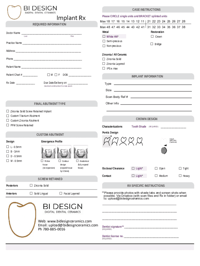 CASE INSTRUCTIONSImplant Rx REQUIRED INFORMATION Max 18 17 16 15 14 13 12 11 21 22 23 24 25 26 27 28 Man 48 47 46 45 44 43 42 41 31 32 33 34 35 36 37 38Doctor Name ___ Displease CIRCLE single units