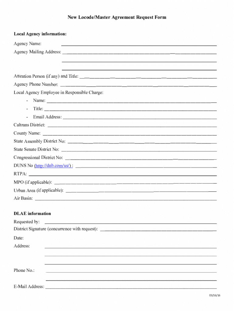 Get the free New Locode/Master Agreement Request Form - dot ca