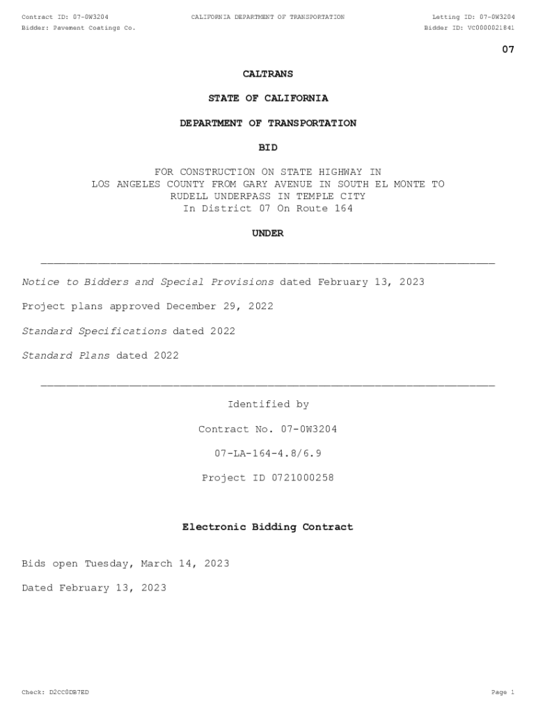Contract ID: 070W3204CALIFORNIA DEPARTMENT OF TRANSPORTATIONBidder: Pavement Coatings Co. Letting ID: 070W3204 Bidder ID: VC000002184107 COLTRANE STATE OF CALIFORNIA DEPARTMENT OF TRANSPORTATION BID