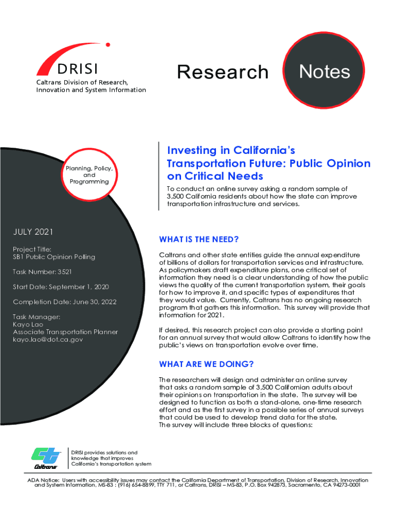 Get the free Investing in Californias Transportation Future. To conduct an online survey asking a...