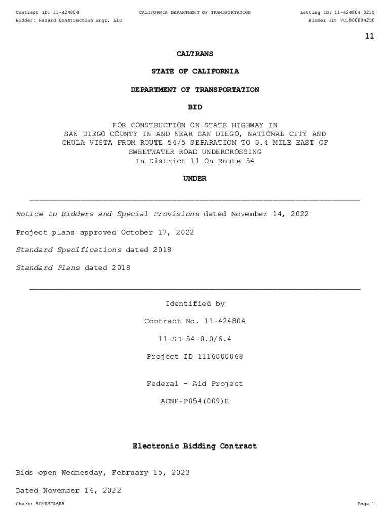 Contract ID: 11424804CALIFORNIA DEPARTMENT OF TRANSPORTATIONBidder: Hazard Construction ENG, Letting ID: 11424804_0215 Bidder ID: VC180000425011 COLTRANE STATE OF CALIFORNIA DEPARTMENT OF TRANSPORTATION