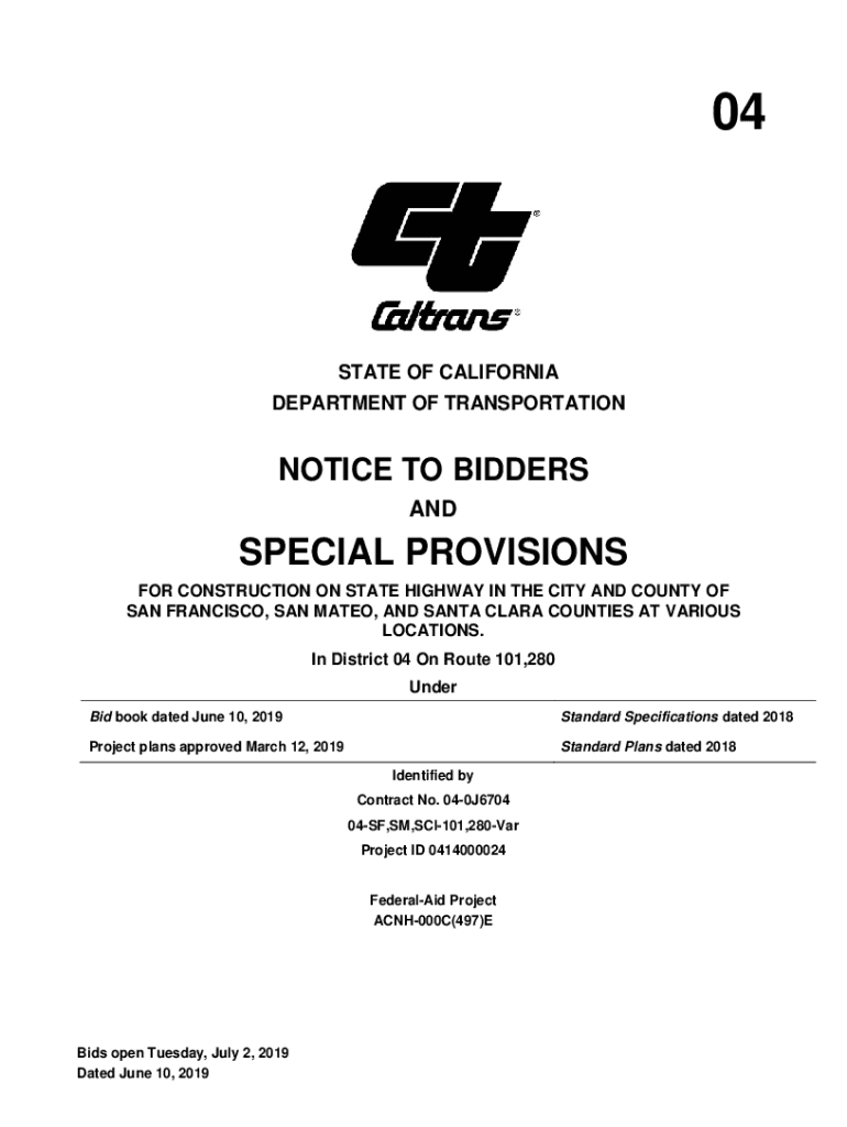 04STATE OF CALIFORNIA DEPARTMENT OF TRANSPORTATIONNOTICE TO BIDDERS SPECIAL PROVISIONS FOR CONSTRUCTION ON STATE HIGHWAY IN THE CITY AND COUNTY OF SAN FRANCISCO, SAN MATEO, AND SANTA CLARA COUNTIES