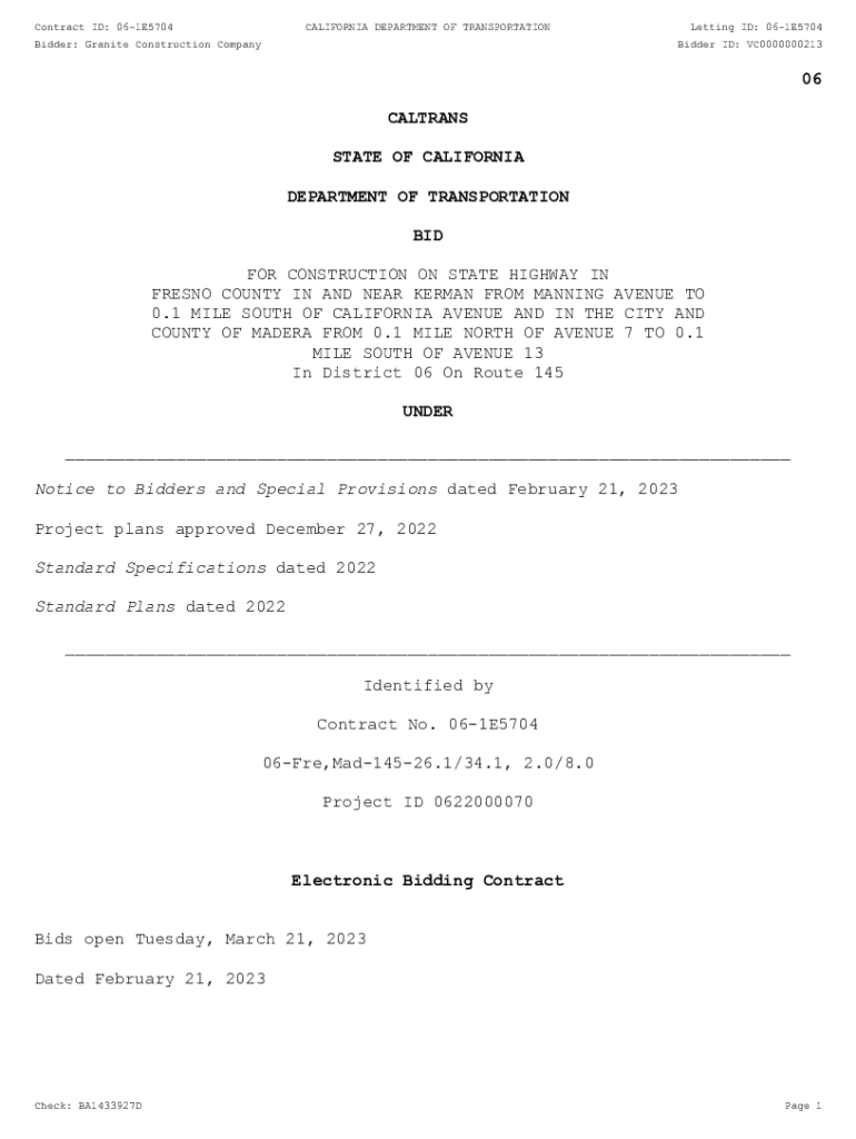 Contract ID: 061E5704CALIFORNIA DEPARTMENT OF TRANSPORTATIONBidder: Granite Construction CompanyLetting ID: 061E5704 Bidder ID: VC000000021306 COLTRANE STATE OF CALIFORNIA DEPARTMENT OF TRANSPORTATION