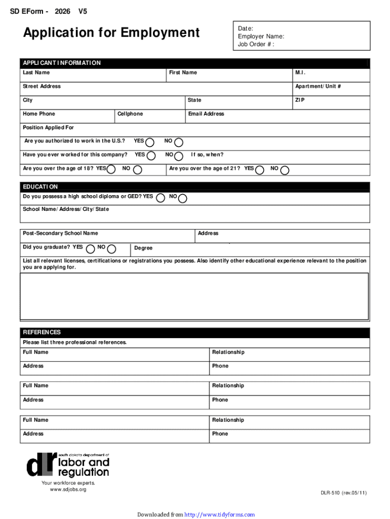 SDE Form 2026Complete and use the button at the end to print for mailing. V5Application for EmploymentHELPDate: Employer Name: Job Order #:APPLICANT INFORMATION Last NameFirst Name. I. Street AddressApartment/Unit