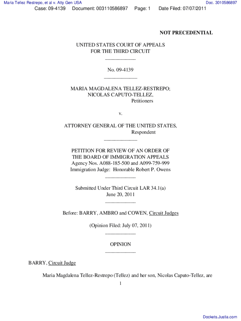 Get the free NOT PRECEDENTIAL OPINION Coram. 09-4139 - Maria Tellez Restrepo, et al v. Atty Gen USA