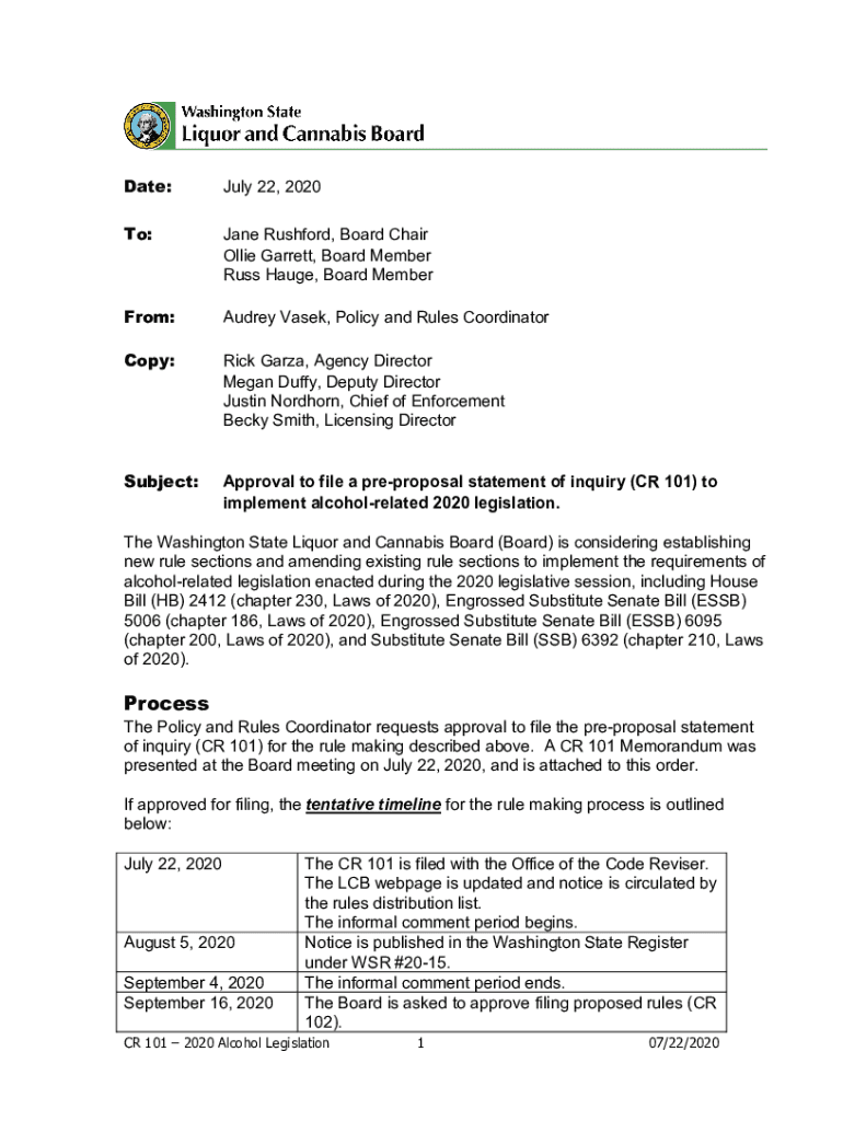 Get the free Approval to file a pre-proposal statement of inquiry (CR 101) to