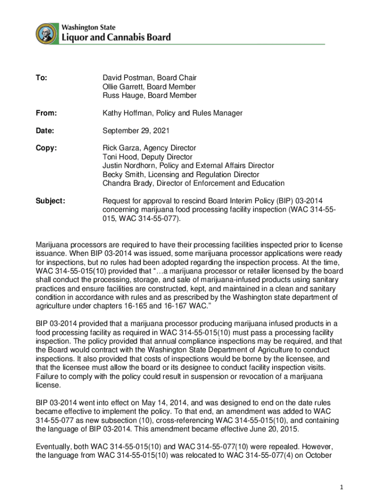 Russ Huge, Board MemberFrom:Kathy Hoffman, Policy and Rules Managerial:September 29, 2021Copy:Rick Garza, Agency Director