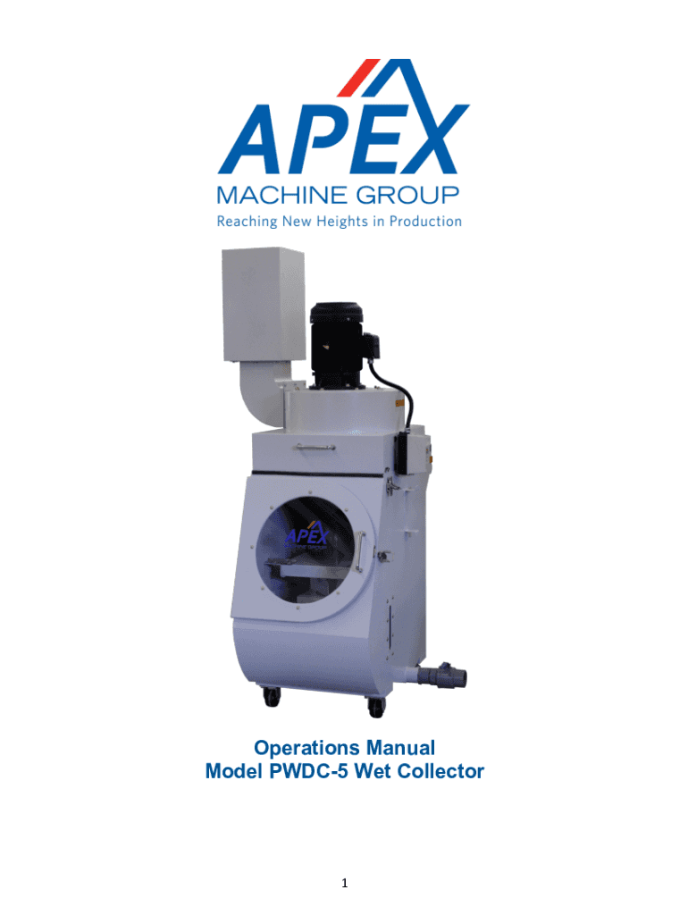 Operations Manual Model PWDC5 Wet Collector1PWDC5 COLLECTOR BY APEX MACHINE GROUP WARRANTY AND SERVICE APEX Machine Group warrants every product it sells. If you need service or repair, contact us