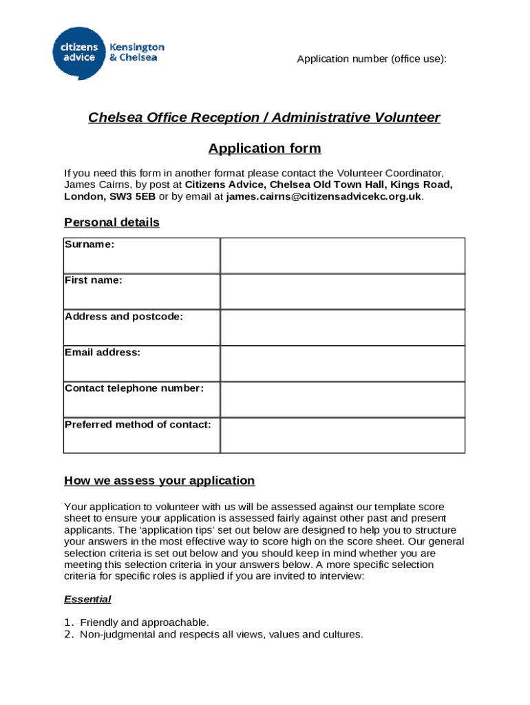 What is Reception-Administrative-Volunteer-Application-- ... Form?