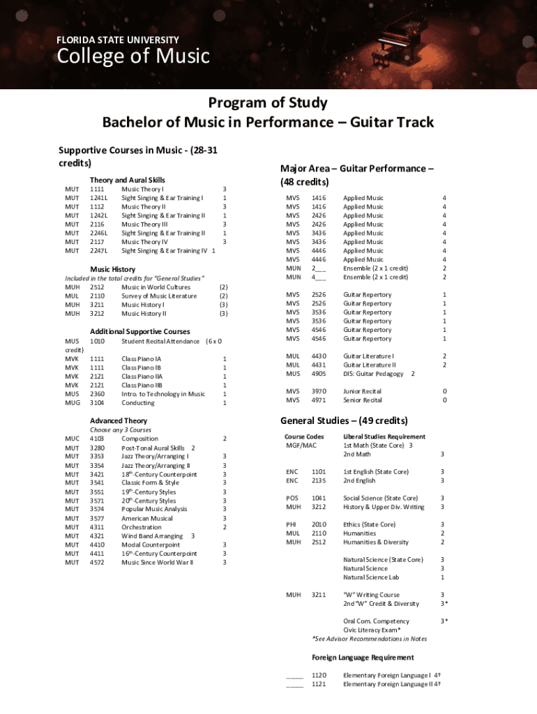 Get the free Program of Study Bachelor of Music in Composition