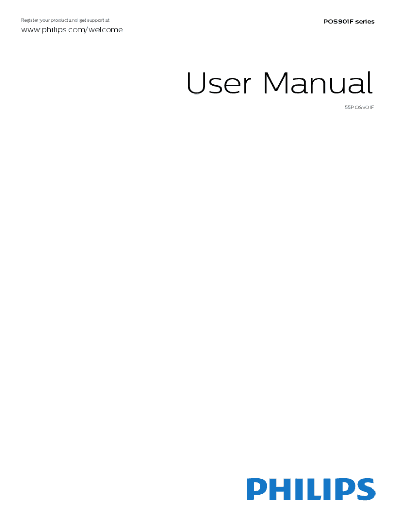 Register your product and get support atPOS901F serieswww.philips.com/welcomeUser Manual 55POS901FContents 1 What\'s new41.1 New Browser Engine2 Setting Up9 Internet 4510 TV Menu2.1 Read Safety 5