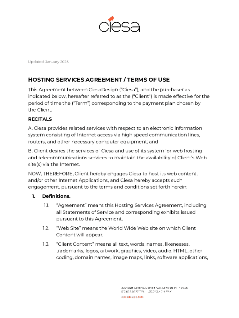 Get the free Ciesa Hosting Services Agreement and Terms of Use