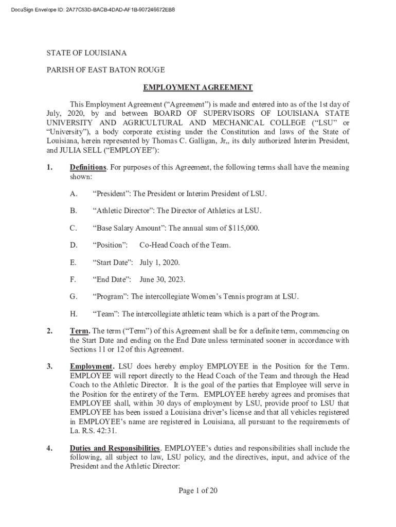 STATE OF LOUISIANA PARISH OF EAST BATON ROUGE EMPLOYMENT AGREEMENT This Employment Agreement (Agreement) is made and entered into as of the 1st day of July 2020, by and between BOARD OF SUPERVISORS