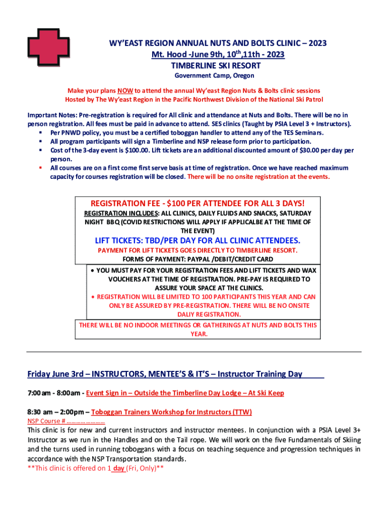 YEAST REGION ANNUAL NUTS AND BOLTS CLINIC 2023 Mt. Hood June 9th, 10th,11th 2023 TIMBERLINE SKI RESORT Government Camp, Oregon Make your plans NOW to attend the annual Yeast Region Nuts & Bolts clinic