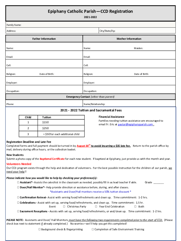 Epiphany Catholic Parish CCD Registration