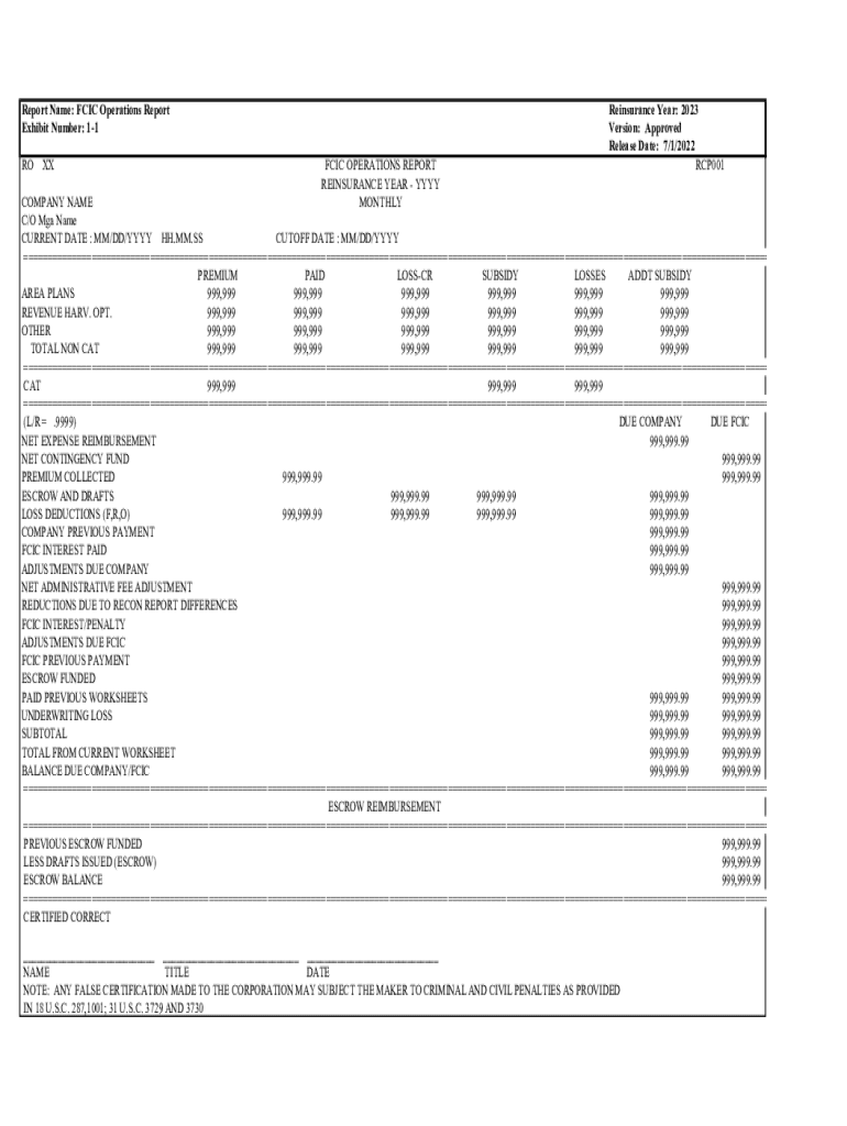 Report Name: FCC Operations Report Exhibit Number: 11 RO FCC OPERATIONS REPORT REINSURANCE YEAR YYY MONTHLYReinsurance Year: 2023 Version: Approved Release Date: 7/1/2022 RCP001COMPANY NAME C/O MGA