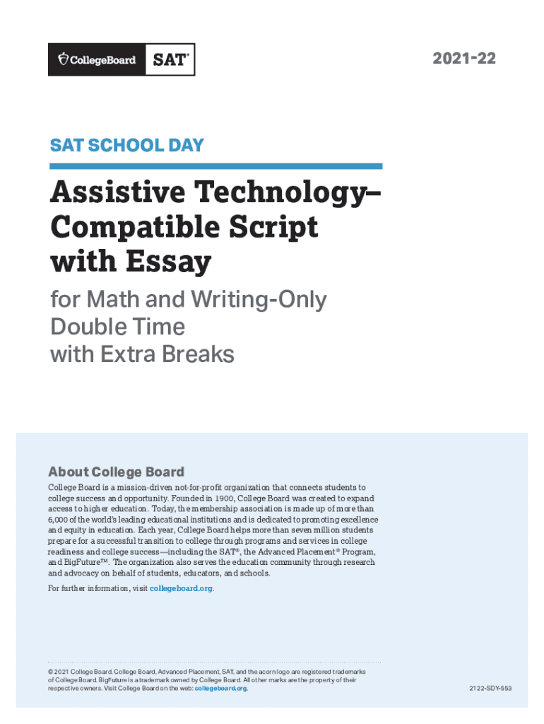 The College Board redesigned SAT is a standardized test widely used for college admissions in the United States.