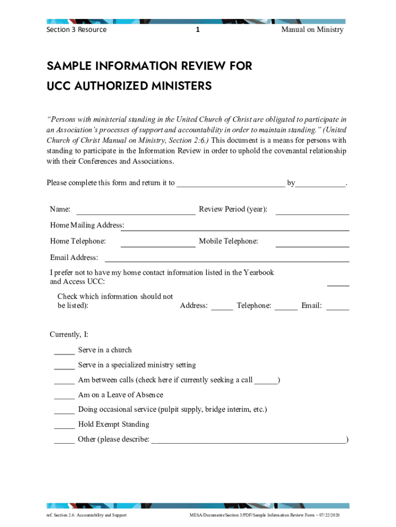 Section 3 ResourceManual on Ministry1SAMPLE INFORMATION REVIEW FOR