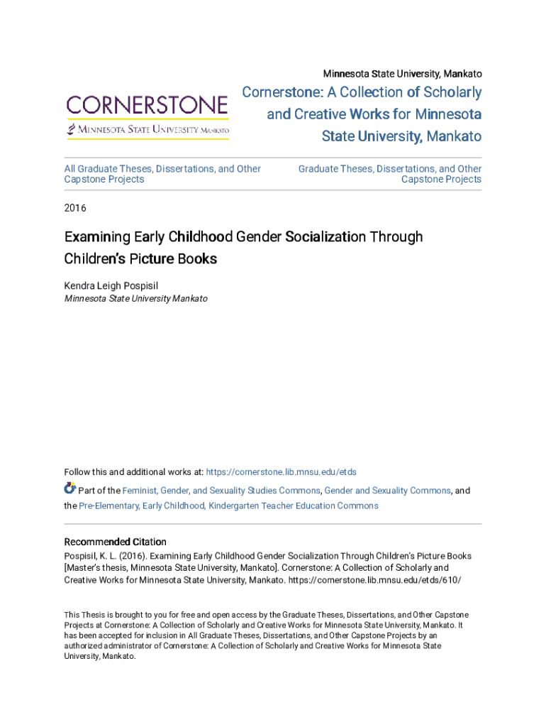 Get the free Examining Early Childhood Gender Socialization Through Childrens Picture Books