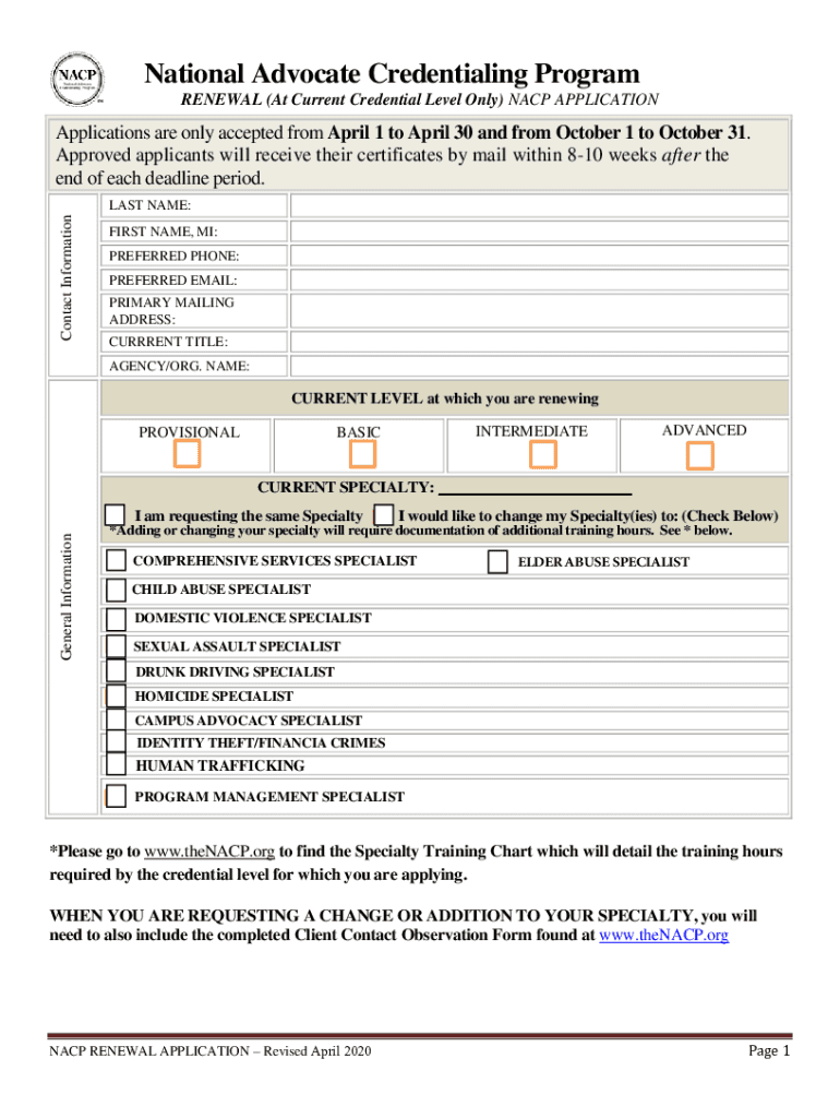 National Advocate Credentialing Program RENEWAL (at the Current Credential Level Only) NAACP APPLICATIONSUBMISSION INSTRUCTIONS & REQUIREMENTS RENEWAL (at the Current Credential Level Only) NAACP